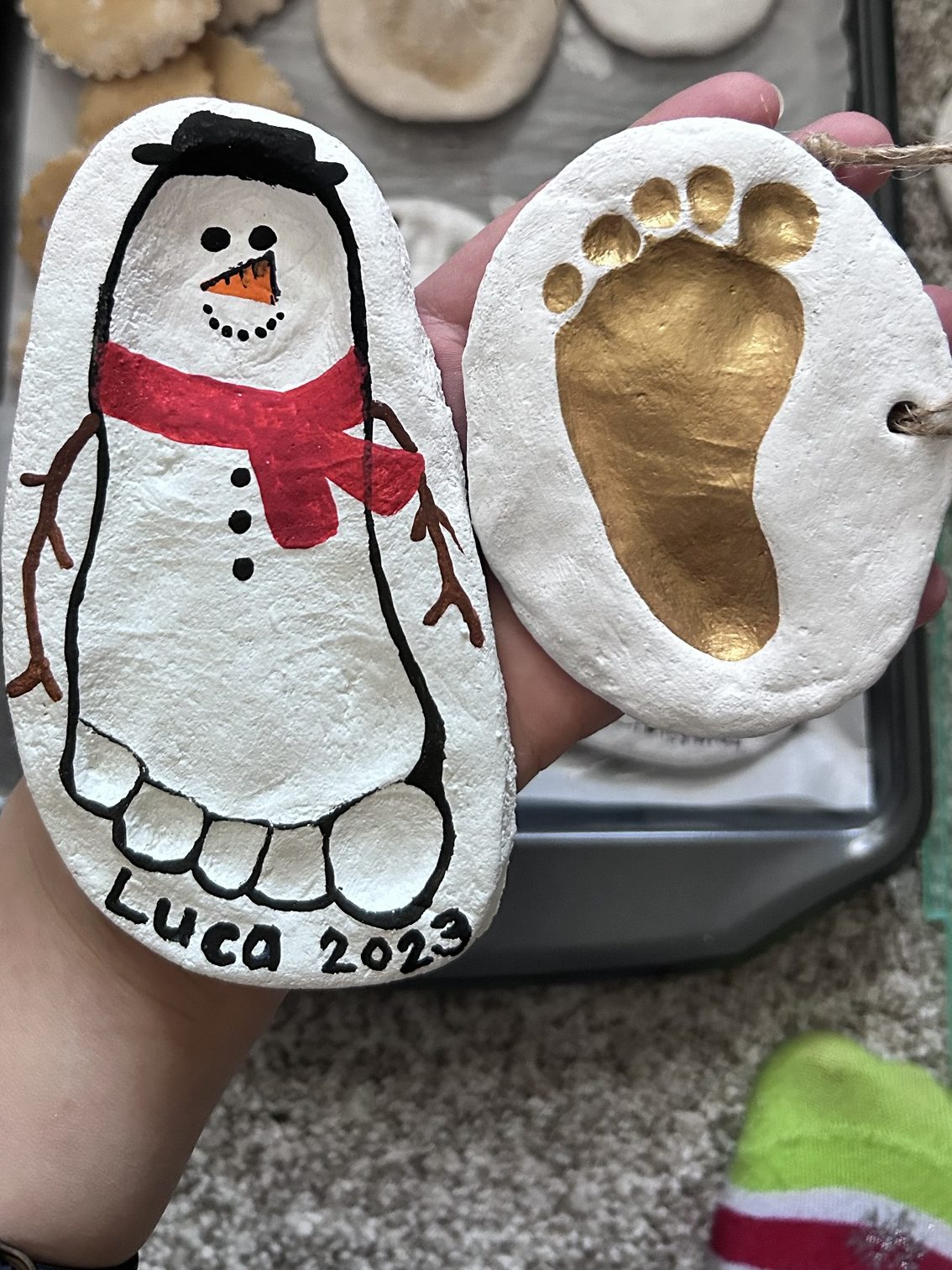 I have to admit, that I sobbed when I pulled this ornament out this year (2024). His handprint is so tiny, and it was from 2 years ago, when I held that little tiny hand in my own hands. It made me so nostalgic for those newborn moments with him, my first little baby. I can’t believe how much he’s grown, and that he just experienced his THIRD Christmas with us! It’s so bittersweet, and beautiful. I love that little guy.